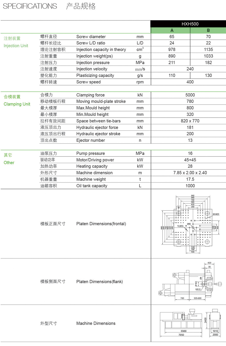 液壓系統(tǒng)采用雙伺服驅(qū)動控制,具有高效節(jié)能、低噪音的優(yōu)點,可實現(xiàn)開模、儲料同步功能。
