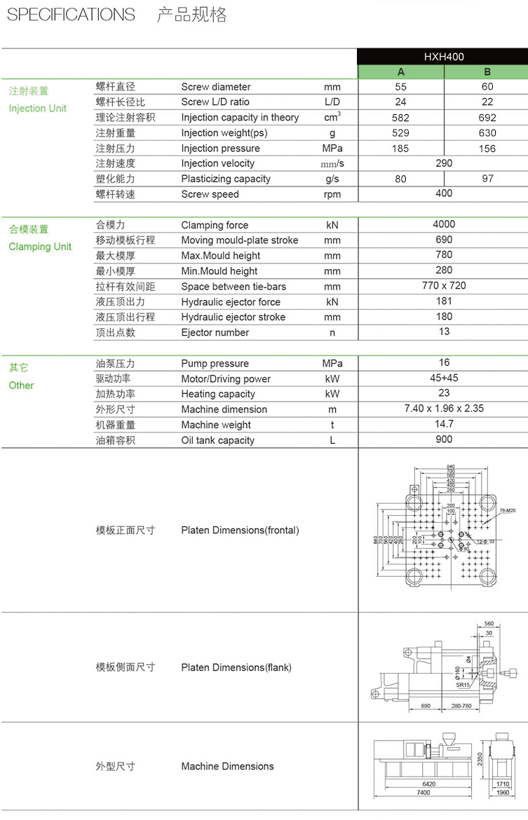 液壓系統(tǒng)采用雙伺服驅動控制,具有高效節(jié)能、低噪音的優(yōu)點,可實現(xiàn)開模、儲料同步功能。