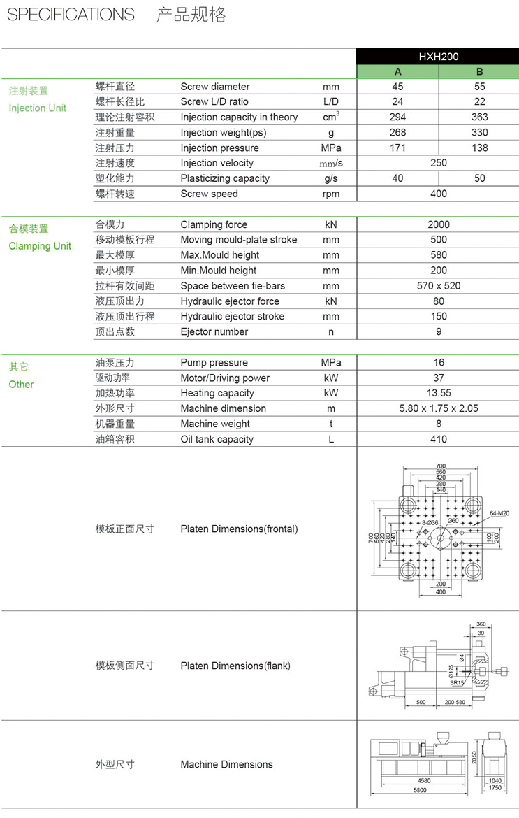 支撐點前移,在裝載模具時可有效保持機器的模板平行精度;